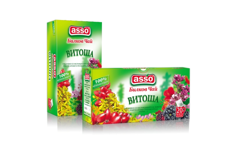 A stalk of thyme, wild rose fruit, a stalk of St. Jone's wort, blueberry leaves, hibiscus blossoms.